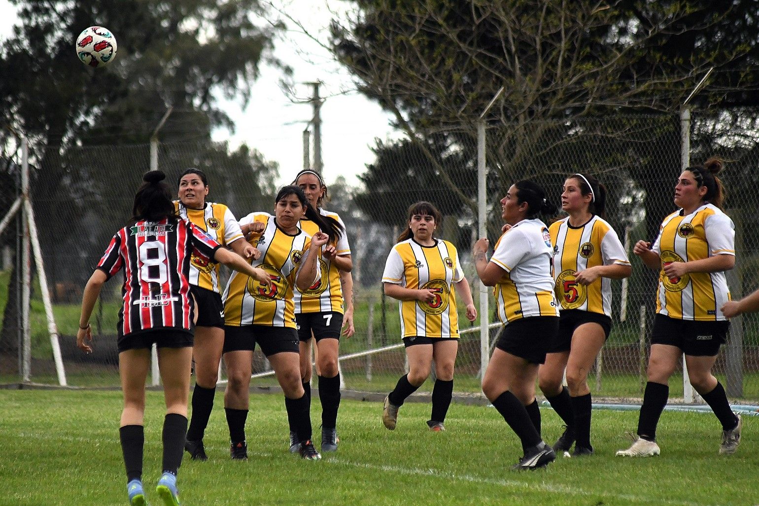 TODA LA DEFENSA. Milagros Giménez intenta vulnerar a la defensa “aurinegra” tras un centro.